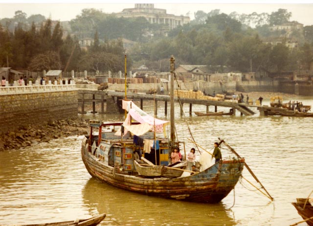 If you’ve ever returned to someplace after a long absence, you know how faded and small or even unrecognizable it can seem. When our ship sailed between Gulangyu and Xiamen, Eugene stood silently at the railing, gazing at the once-colorful scene. On that drizzly day it looked more like a sepia print.